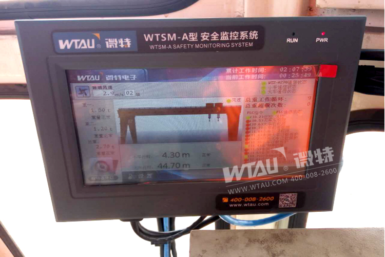 微特為中鐵十二局配備的WTSM-A-03型安全監(jiān)控系統(tǒng),滿足國(guó)家標(biāo)準(zhǔn)對(duì)提梁機(jī)安全監(jiān)控的要求,具有常用的通訊接口,有獨(dú)立并可擴(kuò)展的I/O功能,整機(jī)數(shù)據(jù)采用Modbus或Profibus通訊,對(duì)吊機(jī)具有實(shí)時(shí)監(jiān)控、動(dòng)態(tài)顯示、聲光報(bào)警、數(shù)據(jù)備份以及密碼保護(hù)等功能,且儀表自身具有抗干擾性強(qiáng),操作界面好,通用性強(qiáng)等優(yōu)點(diǎn)。