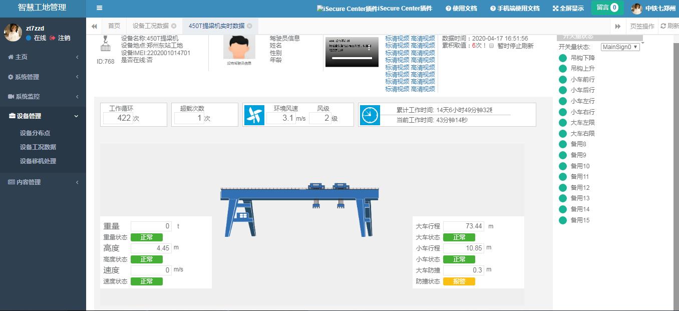 近期,由微特技術有限公司承接的中鐵七局提梁機安全監(jiān)控管理系統(tǒng)順利通過驗收,產(chǎn)品已交付使用。