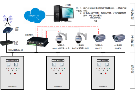 工業(yè)視頻子系統(tǒng)包括攝像機、傳輸、控制、顯示、存儲5大部分。攝像機通過線纜將視頻圖像傳輸?shù)娇刂浦鳈C,控制主機再將視頻信號分配到監(jiān)視器,通過控制主機,操作人員可發(fā)出指令,對攝像機的上、下、左、右的動作進行控制及對鏡頭進行調(diào)焦變倍的操作,并可通過控制主機實現(xiàn)在多路攝像機的切換。利用特殊的錄像處理模式,可對圖像進行錄入、回放、處理等操作,使錄像效果達到最佳。實現(xiàn)緊急遠程提門和落門等操作。