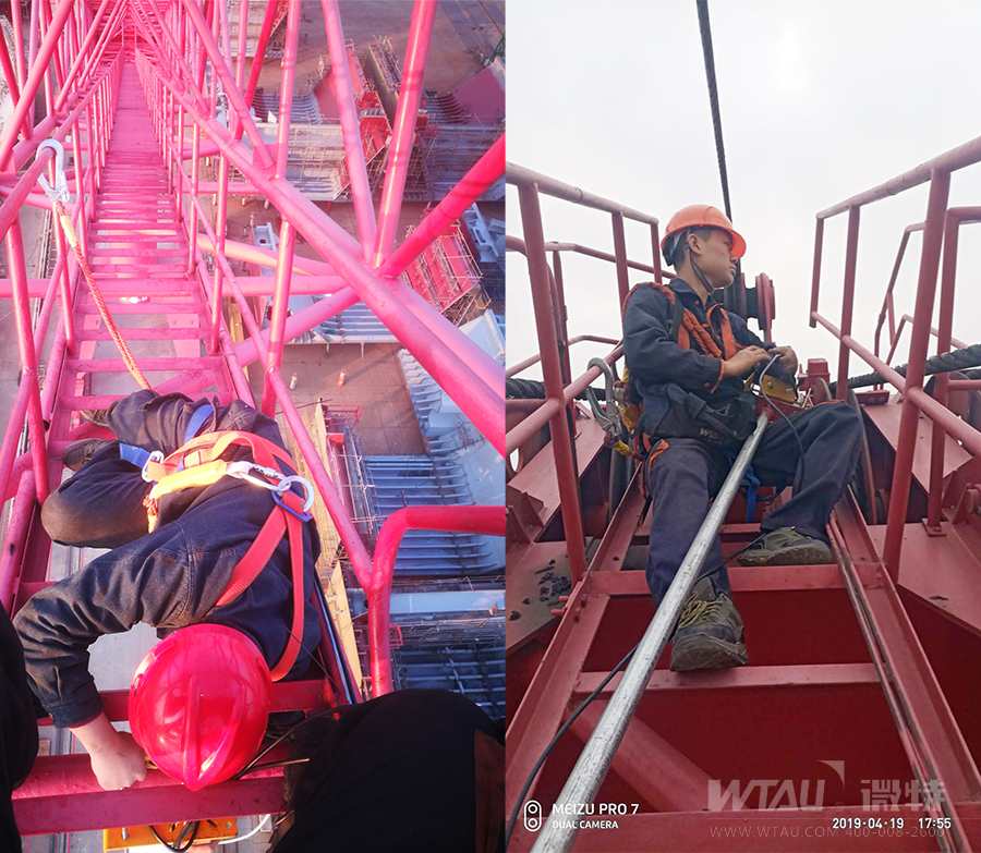 港口門(mén)座式起重機(jī),對(duì)船臺(tái)上的小物品吊裝以及上下貨物也起著至關(guān)重要的作用!港口門(mén)座機(jī)高度高,沒(méi)有電梯,只能徒手多趟搬運(yùn).面對(duì)特檢要求的力矩吊點(diǎn)區(qū)域的全方位覆蓋要求,微特人員運(yùn)用熟練的經(jīng)驗(yàn)以專(zhuān)業(yè)的技能爬到高60米長(zhǎng)60米的臂桿根部,將球機(jī)攝像頭固定在上面,使得吊點(diǎn)區(qū)域全方位無(wú)死角都能覆蓋到。