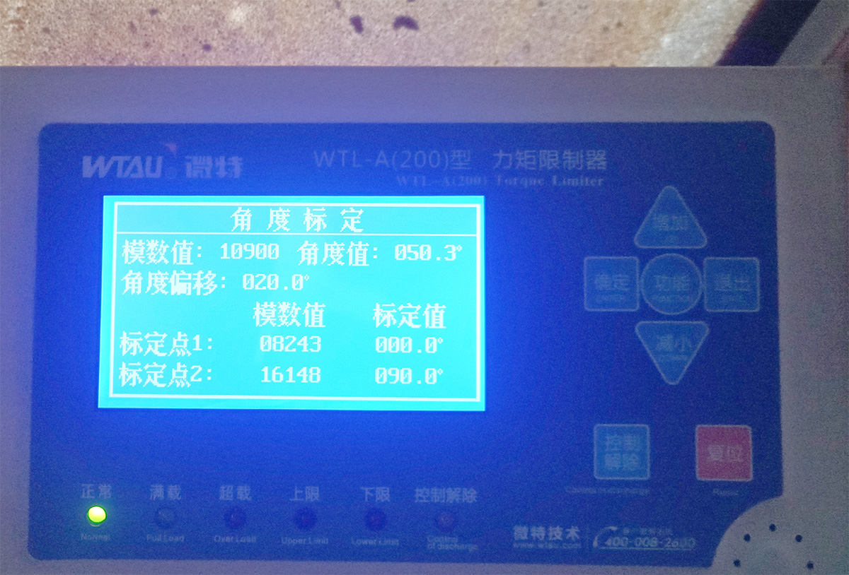 通過本次更換的力矩限制器,司機能夠很直觀的看到吊車實時力矩數(shù)據(jù),做到每一勾起吊都心里有數(shù)。當設備超出儀表的設定值時,WTL-A200儀表會立馬發(fā)出預警的蜂鳴聲,當設備超出曲線規(guī)定數(shù)值時儀表會輸出控制信號,使門機停止不安全方向的動作,由此可保障設備在使用中的吊裝安全。