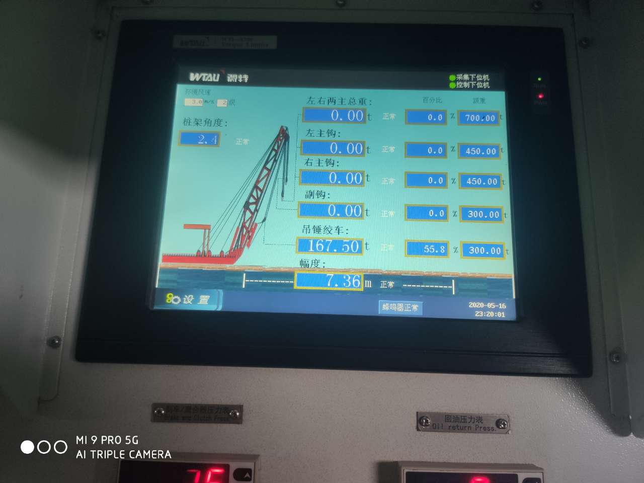 ▲應用于三航樁20的WTL-A700力矩限制器儀表