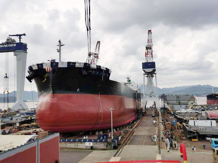 2020年9月,常石集團(tuán)(舟山)造船有限公司新造的一艘近10萬(wàn)噸級(jí)散貨船下水。今年以來,該公司交船13艘,產(chǎn)值已超25億元,比去年同期有所增長(zhǎng)。