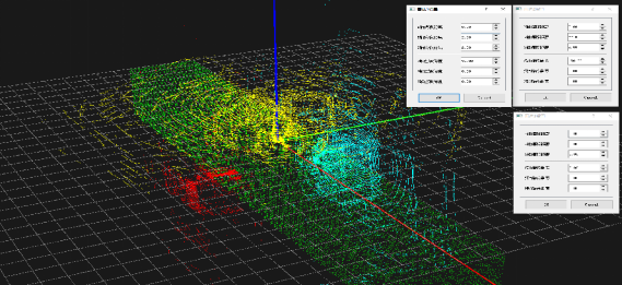 激光多線雷達掃描臂架三面空間,點云成像,定位入侵物體最近點,提供三視圖和數(shù)據(jù)。