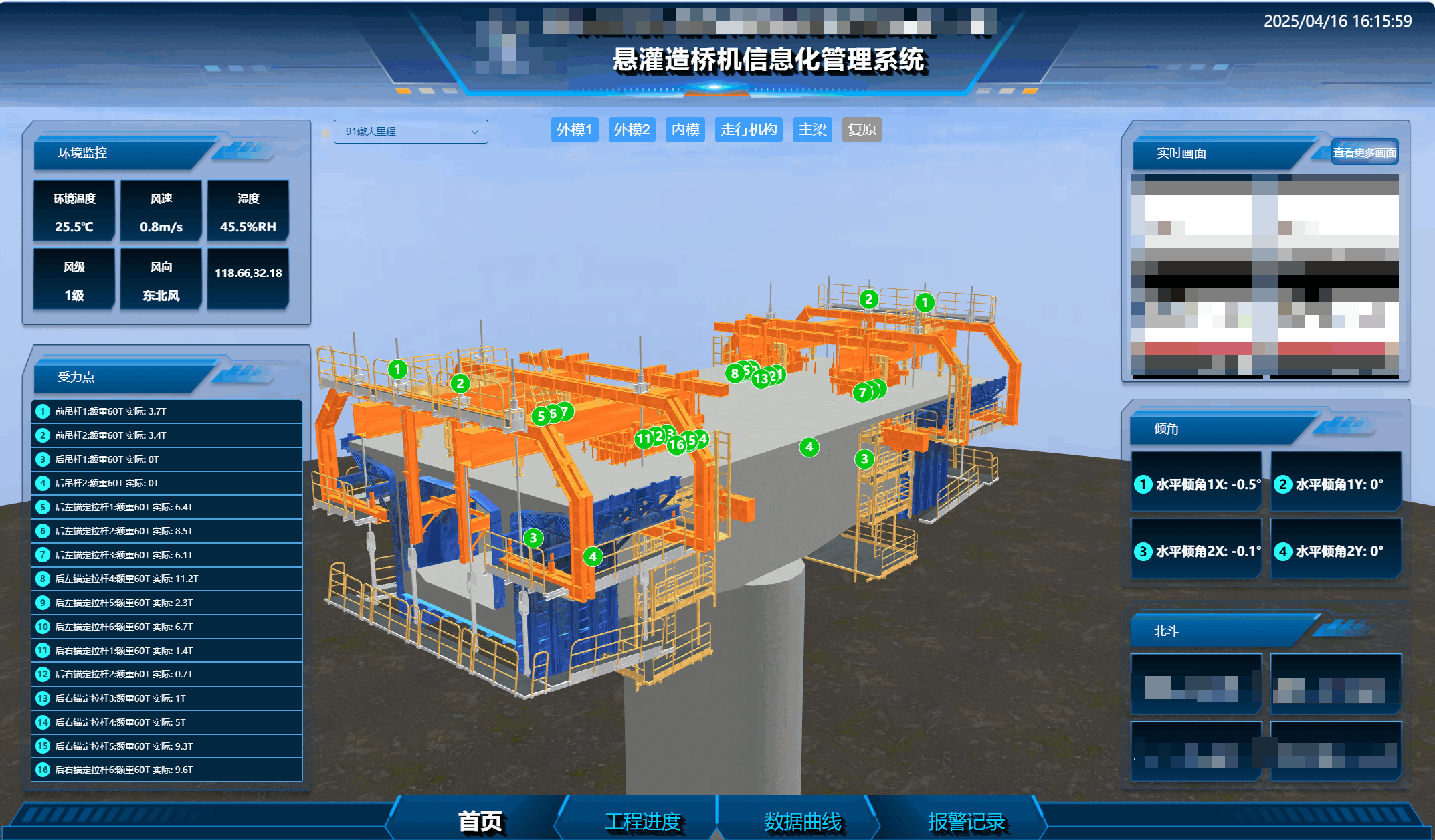 在越來越大的發(fā)展下,對造橋機(jī)的平衡施工監(jiān)測,微特技術(shù)有限公司參與了2年多,也就是和該類型設(shè)備首次出現(xiàn)就開始了對其安全性的監(jiān)測。在雄忻高鐵項(xiàng)目,微特首次和設(shè)計(jì)院合作為其第一臺上承式造橋機(jī)進(jìn)行了監(jiān)測。主要測量#走線不平衡#重量澆筑不平衡,兩個關(guān)鍵參數(shù)分別用力傳感器和北斗監(jiān)測實(shí)現(xiàn)。其次對設(shè)備本身傾斜,走行距離,結(jié)構(gòu)應(yīng)力,環(huán)境監(jiān)測等數(shù)據(jù)進(jìn)行采集。另外對現(xiàn)場施工視頻監(jiān)控進(jìn)行覆蓋。