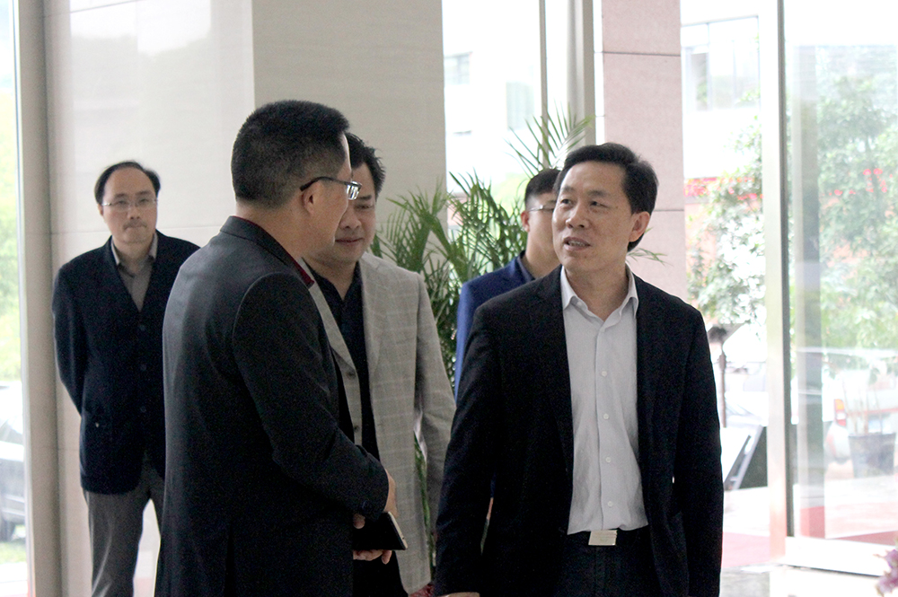 峽峰電子公司負(fù)責(zé)人嚴(yán)總向郭主席一行介紹公司產(chǎn)品
