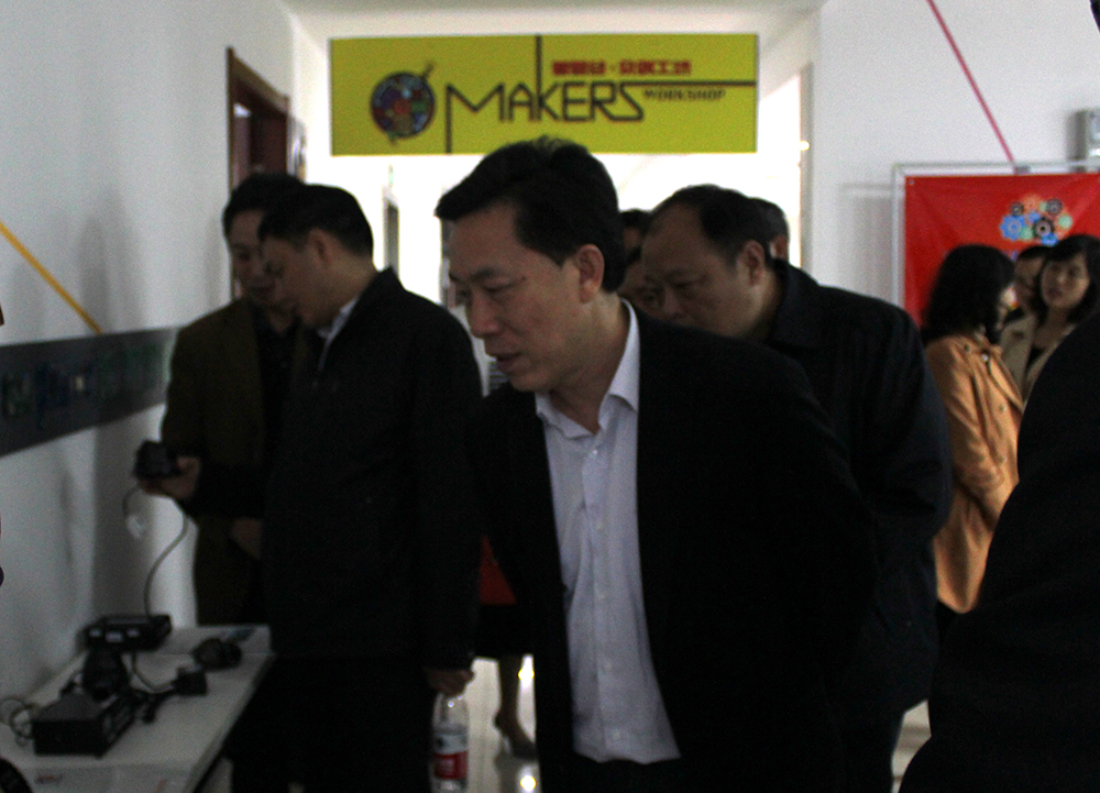 上圖:在眾創(chuàng)工坊郭主席一行參觀創(chuàng)客制造的產(chǎn)品展示