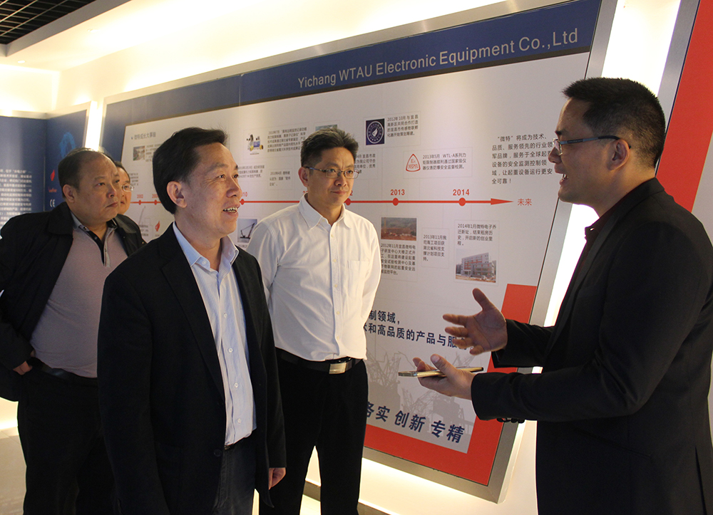 上圖:郭主席一行來(lái)到宜昌市微特電子設(shè)備有限責(zé)任公司,聶道靜作為微特創(chuàng)始人在展廳向來(lái)訪領(lǐng)導(dǎo)介紹微特電子的發(fā)展歷程。