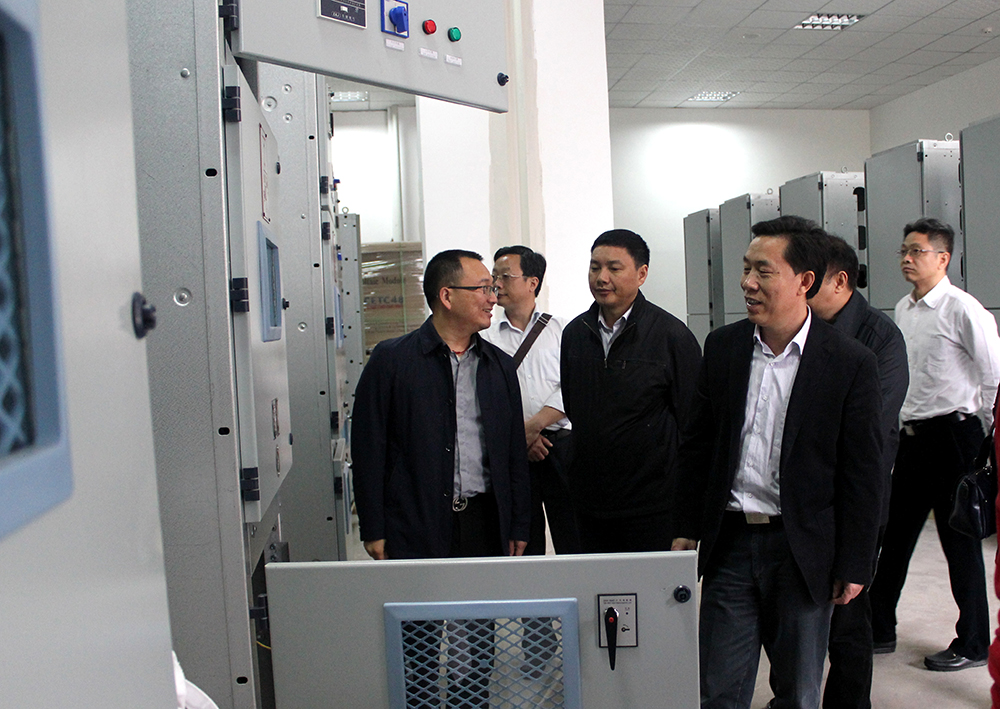 郭主席一行來(lái)到創(chuàng)業(yè)企業(yè):普泰克電力科技有限公司。上圖為普泰克總經(jīng)理易鋼在生產(chǎn)車間向來(lái)訪領(lǐng)導(dǎo)介紹公司產(chǎn)品。
