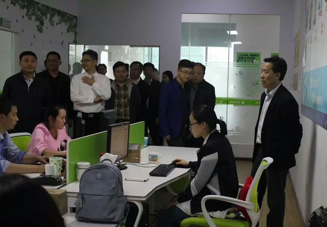 郭主席一行來(lái)到創(chuàng)業(yè)企業(yè):納新網(wǎng)絡(luò)科技有限公司。上圖為納新總經(jīng)理羅新在辦公區(qū)向來(lái)訪領(lǐng)導(dǎo)介紹企業(yè)發(fā)展現(xiàn)狀