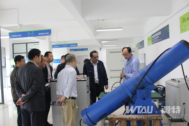 在微特投建的湖北省智能吊裝設(shè)備研發(fā)檢測中心,技術(shù)總監(jiān)高鈺敏詳細向張總一行介紹了檢測中心的設(shè)備與使用情況。張總對微特投入這些全新的檢測實驗設(shè)備用于研發(fā)和保障產(chǎn)品品質(zhì)表示贊賞。當看到正在做深水實驗的穿銷就位傳感器時,清江公司張總一行對此都特別感興趣,微特電子高總特地對新研發(fā)的就位傳感器作了詳細的講解和說明。