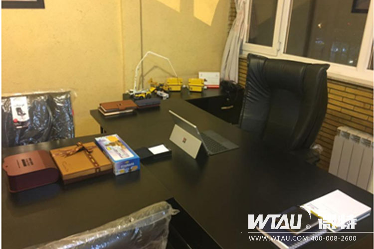圖為新公司Hassan的辦公室一角(微特產(chǎn)品與起重機(jī)模型擺放在一起)