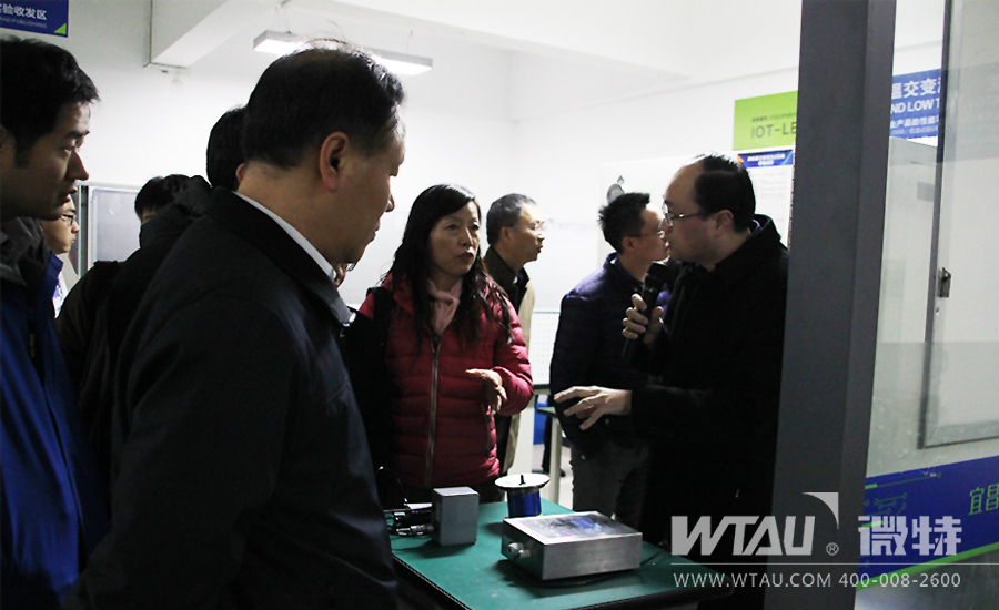 微特電子高總向來訪領(lǐng)導(dǎo)和專家介紹傳感物聯(lián)實驗室的建設(shè)和使用情況