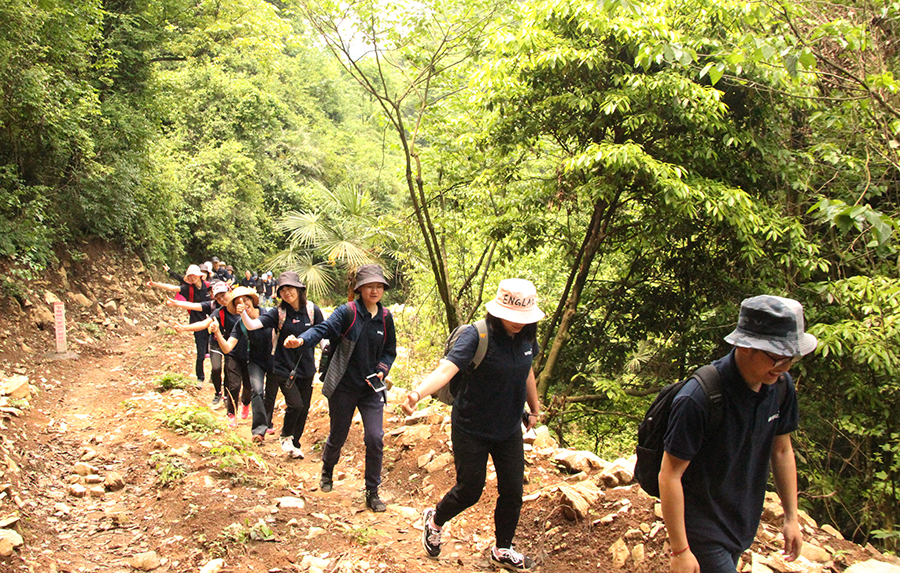 野炊結(jié)束各隊(duì)稍作休整即開始出發(fā),走在山澗的小路上,歡樂的隊(duì)伍打破了安靜的山林。