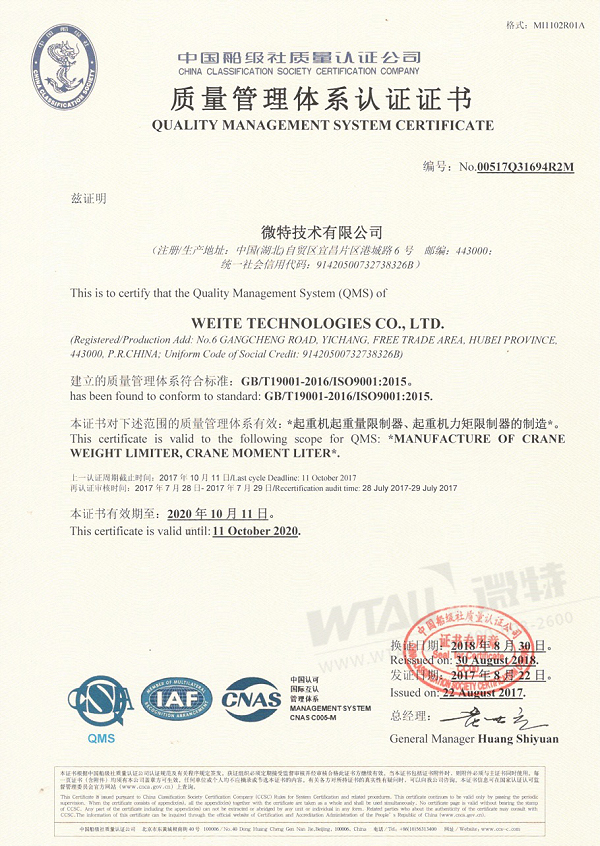 2018年9月12日,微特技術(shù)有限公司品控部收到由中國船級社認(rèn)證公司寄來的微特技術(shù)有限公司ISO9001:2015質(zhì)量管理體系證書,標(biāo)志著公司順利通過2018年度的質(zhì)量體系船級社審核。