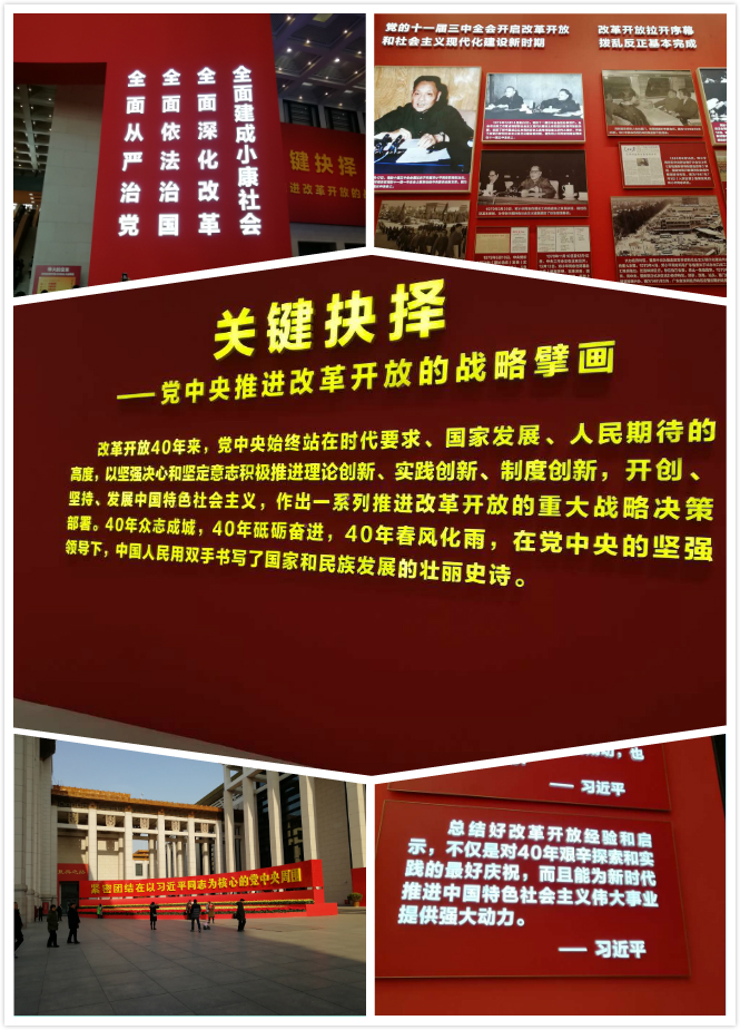 “偉大的變革——慶祝改革開放40周年大型展覽”設(shè)計(jì)了關(guān)鍵抉擇、壯美篇章、歷史巨變、大國氣象、面向未來等主題展區(qū);運(yùn)用歷史圖片、文字視頻、實(shí)物場景、沙盤模型、互動(dòng)體驗(yàn)等多種手段和元素,充分展示40年來特別是黨的十八大以來,人民群眾生產(chǎn)生活發(fā)生的偉大變遷,中華民族迎來了從站起來、富起來到強(qiáng)起來的偉大飛躍。