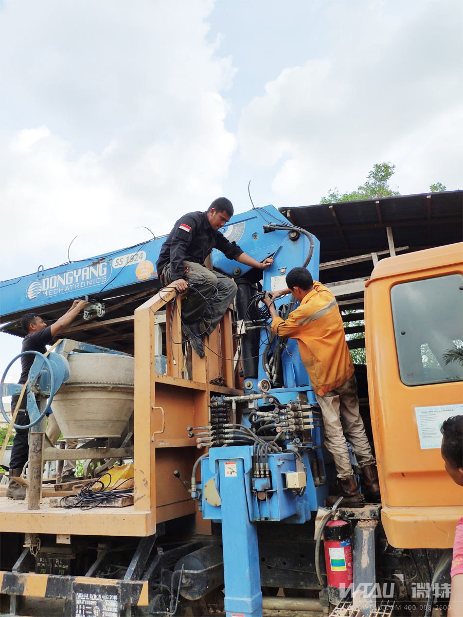 ▲圖為準(zhǔn)備進(jìn)入泗水現(xiàn)場(chǎng)吊車(chē)安裝的微特工程師