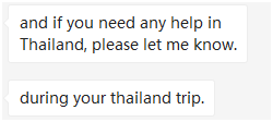 這句話(在你的泰國(guó)旅途中,如果需要幫助,請(qǐng)聯(lián)系我)出自很多泰國(guó)用戶之口,雖然很簡(jiǎn)單,但溫暖著在路上的微特人。在泰國(guó),語(yǔ)言的差異早已不是出行中的大問(wèn)題,最大的問(wèn)題是在曼谷以外的區(qū)域,打車難是最大的困擾,UBER/GRAB叫車基本無(wú)人應(yīng)答,甚至大街上都看不到一輛出租車,而客戶總是施以援助之手,安排司機(jī)接送。