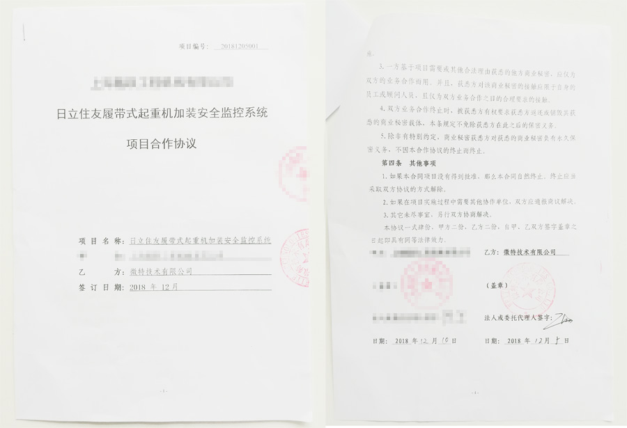 2019年4月12日,微特技術(shù)有限公司與日本日立住友合作的第一套日立住友履帶吊安全監(jiān)控系統(tǒng)正式安裝完成并通過驗收,這也是目前中國國內(nèi)市場得到日方唯一授權(quán)的第一套完全符合新國標的日立住友履帶吊安全監(jiān)控管理系統(tǒng)。