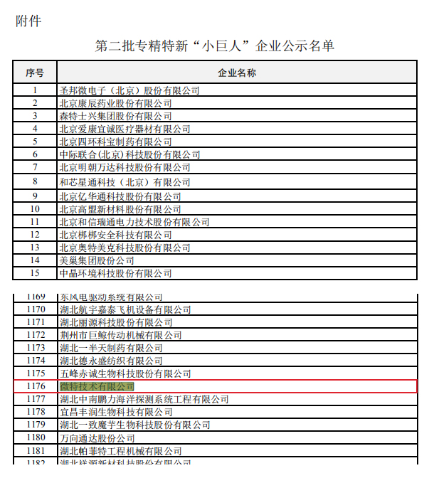 日前,微特技術(shù)有限公司通過國家工信部公示,入選第二批專精特新“小巨人”企業(yè)。