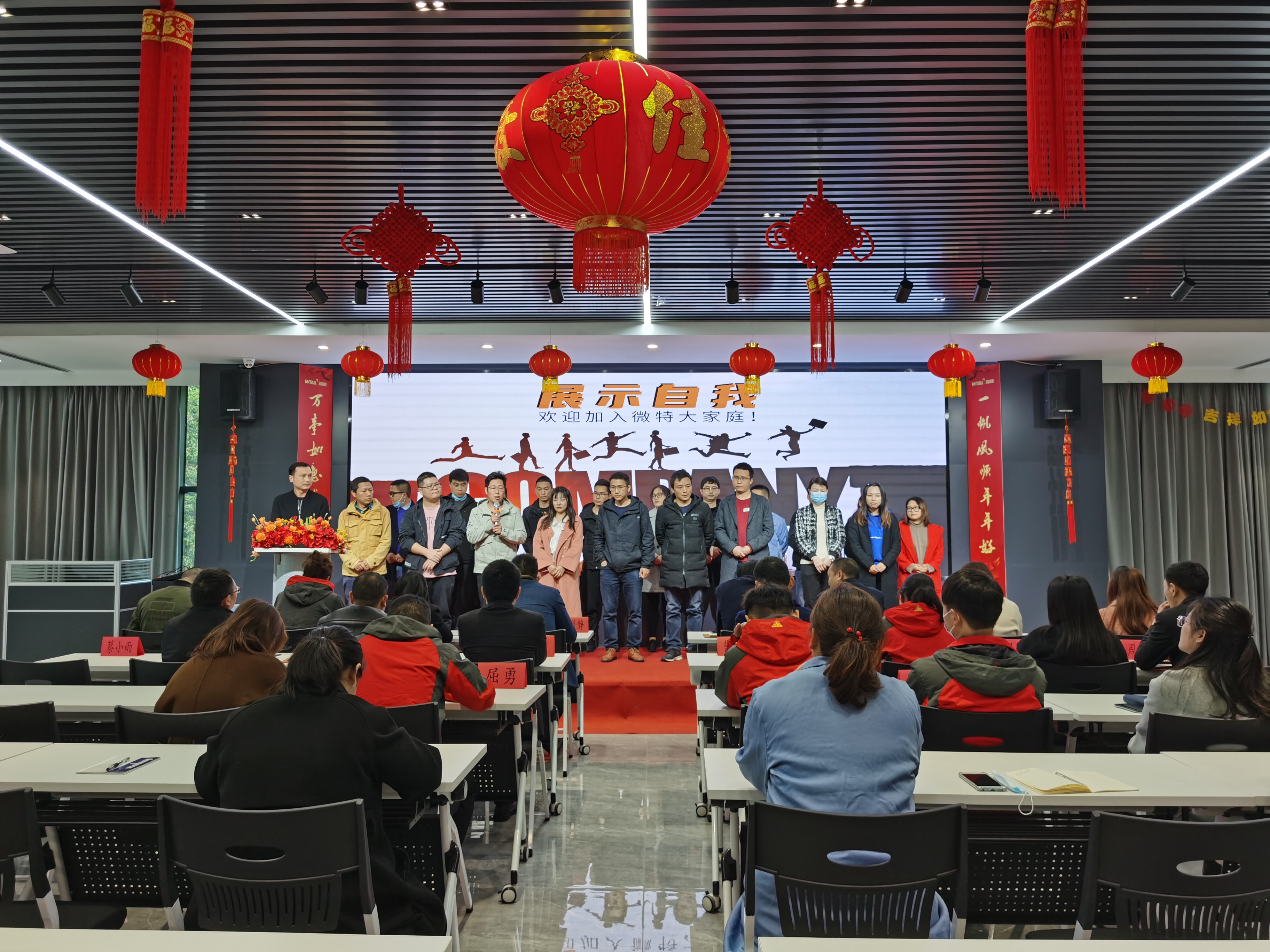 第一季度共有26位新員工加入微特大家庭,會議上邀請了在第一季度中加入微特的新同事進行了自我介紹,出差在外不在會議現(xiàn)場的新同事也通過視頻讓大家認(rèn)識自己。