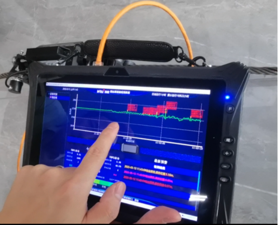 面對考驗,微特技術(shù)工程師迅速行動,采用便攜式鋼絲繩在線監(jiān)測系統(tǒng)進行檢測。設(shè)備快速且精準(zhǔn)地完成任務(wù):現(xiàn)場共檢出10處損傷,其中嚴(yán)重?fù)p傷達 6 處,并生成了詳細的檢測報告。這一結(jié)果充分展現(xiàn)了微特鋼絲繩檢測產(chǎn)品對內(nèi)部斷絲、局部磨損等缺陷強大的識別能力,完美驗證了其技術(shù)的有效性與可靠性。