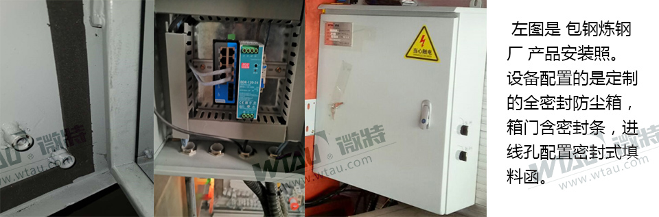 信號采集設(shè)備安裝在密封防塵防護(hù)箱中。防塵箱設(shè)計有防塵密封條,進(jìn)線孔配置密封環(huán)、填料函,對現(xiàn)場的金屬粉塵、金屬氧化膜、煙塵隔離,保障信號采集設(shè)備不受環(huán)境影響。