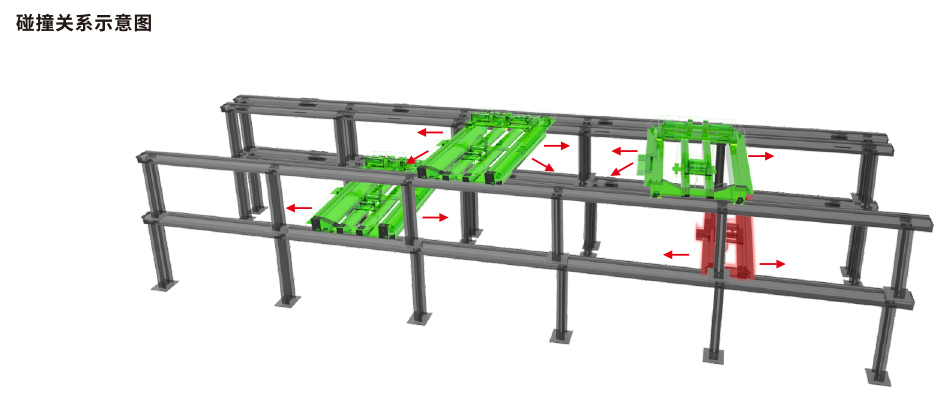 橋機(jī)工作時需要在軌道上來回移動吊運(yùn)貨物,大部分廠房橋機(jī)軌道上都會采用多機(jī)配合作業(yè)。橋機(jī)之間難免會發(fā)生碰撞,而機(jī)械限位防撞預(yù)警距離太短,年久失修都會導(dǎo)致相鄰、上下層軌道之間橋機(jī)作業(yè)時發(fā)生碰撞,導(dǎo)致事故發(fā)生。
