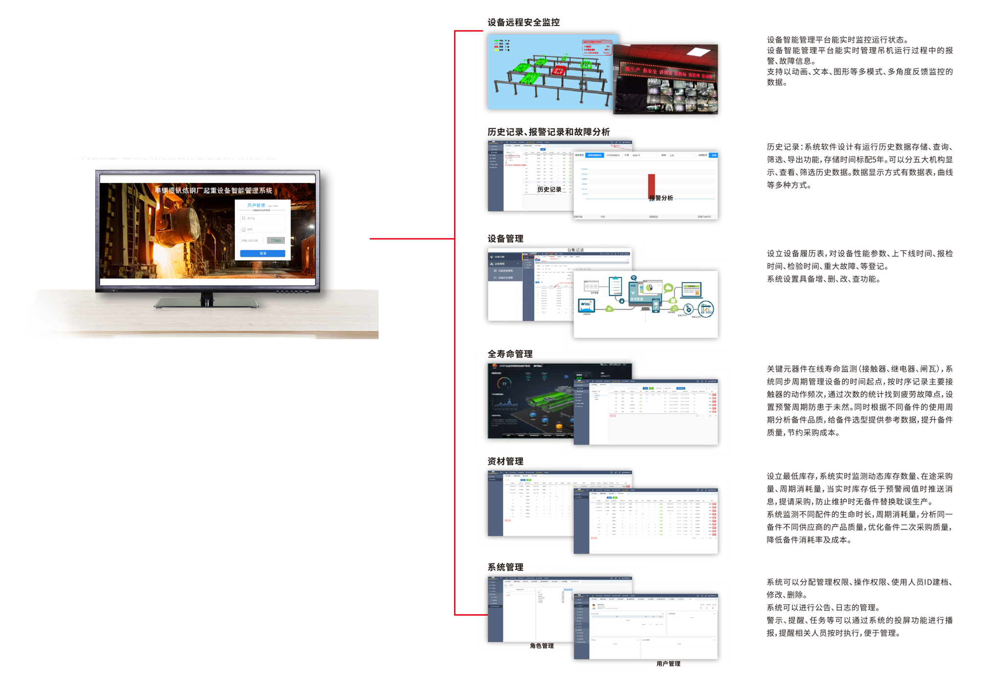 WTCIMS-V2.0版起重設(shè)備智能管理系統(tǒng)是微特技術(shù)有限公同開發(fā)的針對(duì)鋼廠設(shè)備管理智能化的解決方案,是一個(gè)綜合型的設(shè)備管理軟件,是一歉共享型的工作平臺(tái)。