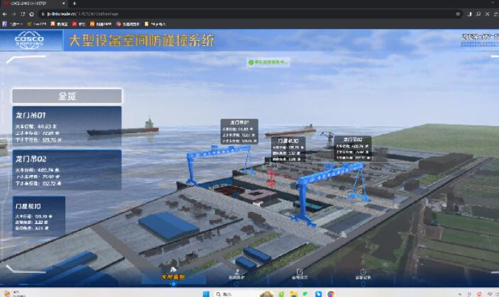 為保障生產(chǎn)安全,需要設(shè)計實施部署船塢、船臺吊機防碰撞系統(tǒng)及遠程數(shù)字化監(jiān)控平臺,實時監(jiān)測船臺每臺吊機的運行狀態(tài),預(yù)防起重機與起重機工作之間的碰撞隱患,規(guī)避安全風(fēng)險。