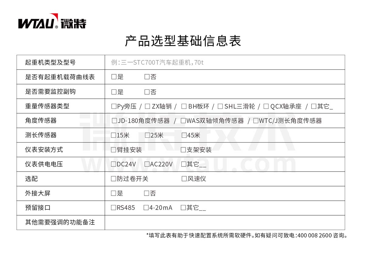 WTL-A100N力矩限制器主要用于汽車吊、履帶吊、隨車吊等移動式起重機。