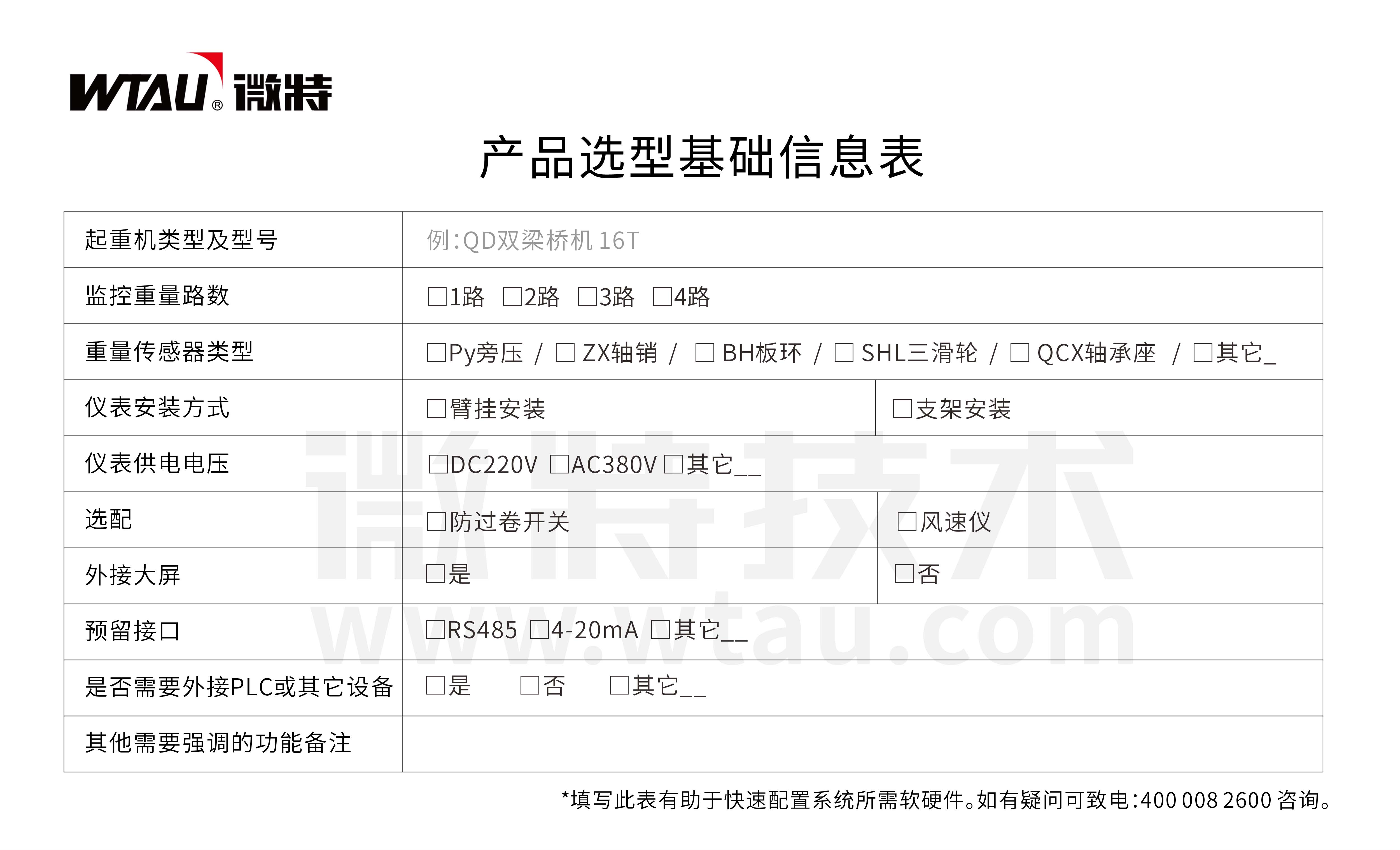 WTZ-A300起重量限制器適用于各類橋門式起重機(jī),如:大型通用橋式起重機(jī)、冶金橋機(jī)、龍門吊、壩頂門機(jī)、單雙梁橋機(jī)、裝卸橋機(jī)、纜索吊、機(jī)械立體停車庫等。