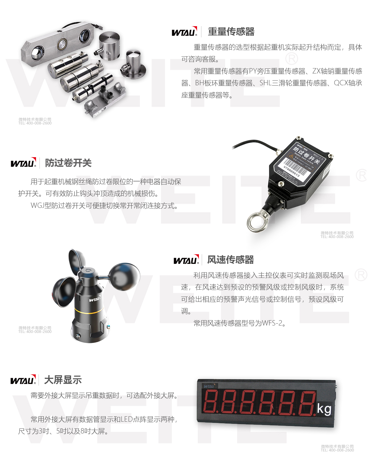 WTZ-A300起重量限制器(超載限制器)為微特研發(fā)生產(chǎn)的藍(lán)屏顯示起重量限制器,已在市場服役超過15年。該型號起重量限制器具有運(yùn)行穩(wěn)定可靠、界面顯示簡潔、低功耗高精度、數(shù)據(jù)采集及輸出控制靈活可調(diào)等特點(diǎn)。