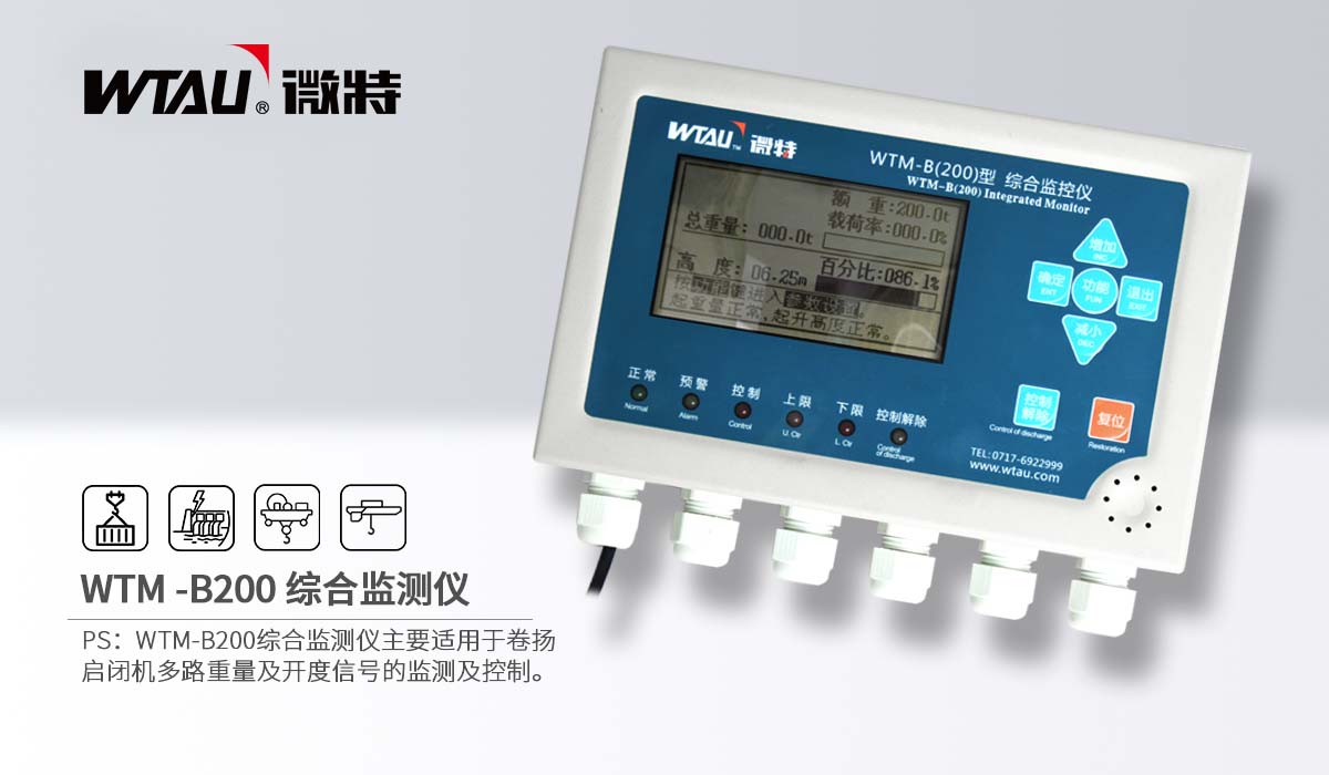 WTM-B200綜合監(jiān)測儀適用于卷揚啟閉機(jī)多路重量及開度信號的監(jiān)測及控制。