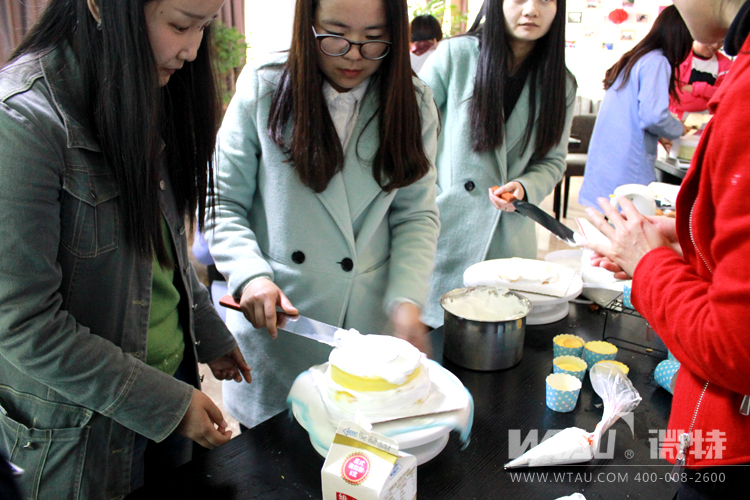在老師的指導(dǎo)下大家共同努力,親手做出了精美的蛋糕??粗@些甜蜜的作品,眾女神還特邀請男神共同品嘗,讓男神們在這個特殊的“女人節(jié)”,不嫉妒、不抱怨,品嘗甜蜜!