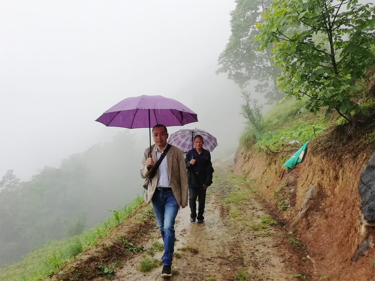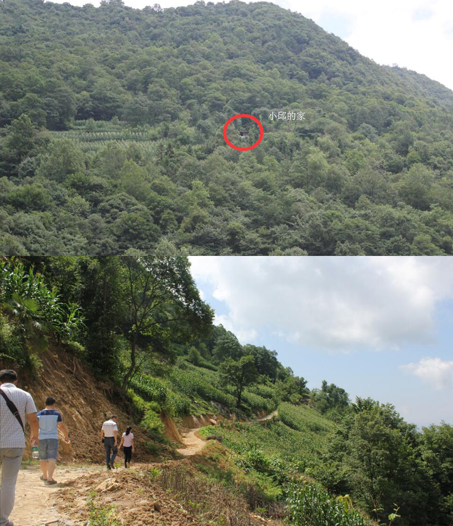 車在小邱小學(xué)班主任覃老師家的路旁停下,再往下開(kāi),怕是連越野車也抗不住了。大約還有3里路,我們同一起來(lái)迎的邱爺爺走著上去。