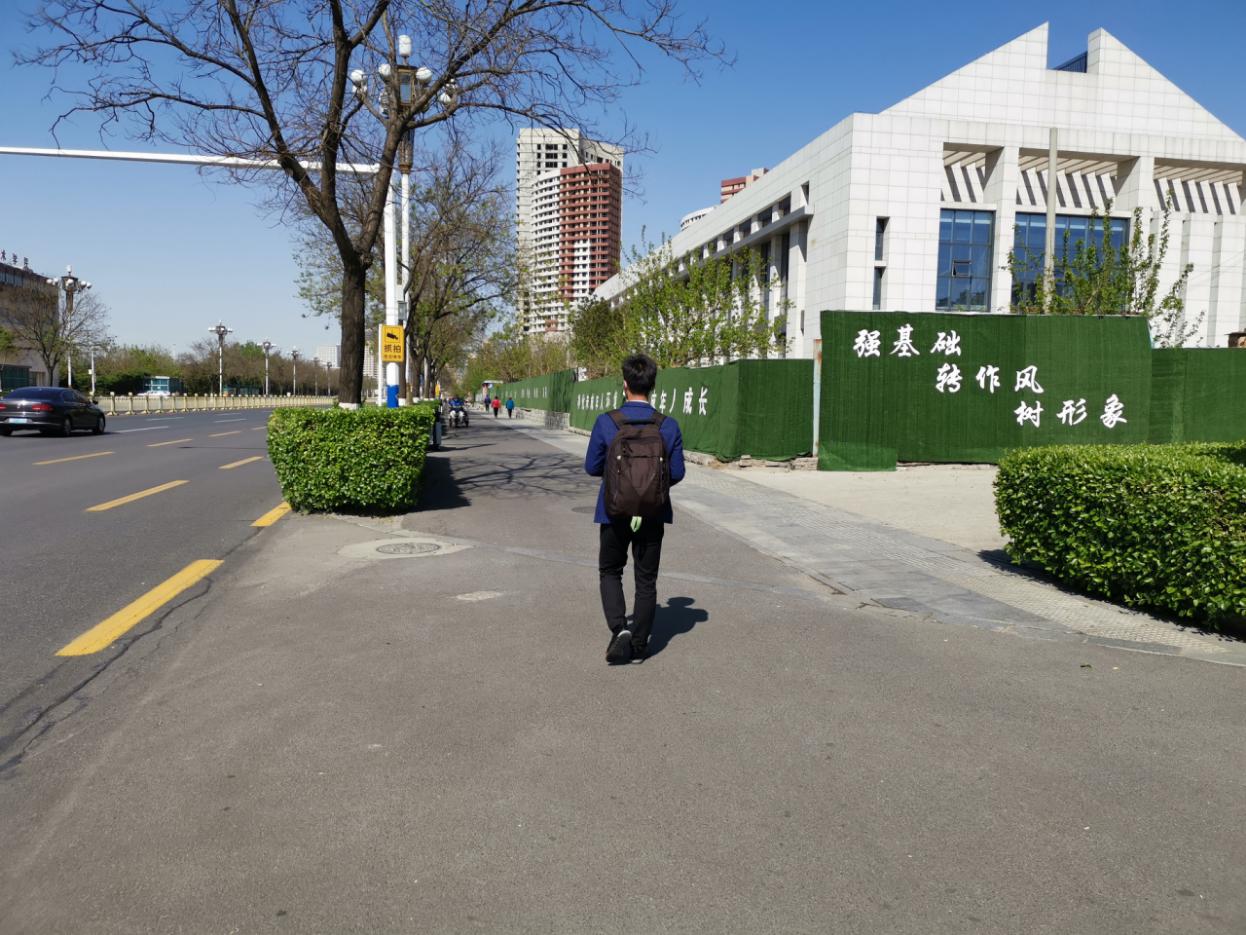 第二天,天氣晴朗,唐山的天空格外的藍(lán),大街上行人不多,一切井然有序。我們出發(fā)前往客戶單位,昭君先生背影執(zhí)著,邁著輕快的步伐,自信而堅(jiān)定。